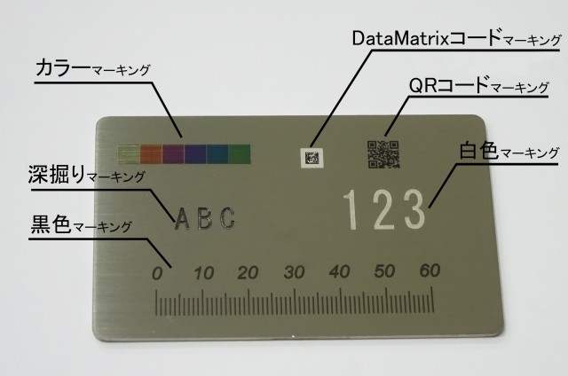 視認性に優れた「黒色印字(ブラックマーキング)」や深掘りマーキング、ステンレス等へのカラーマーキングなど、多彩な加工が可能です。